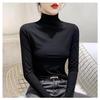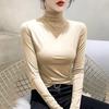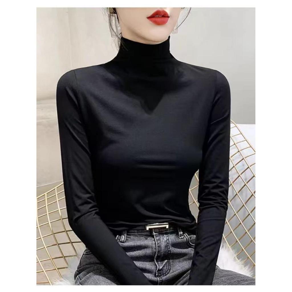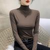 Women's Thickened Slim Fit Long Sleeve T-Shirt with Double-Sided Plush, Mid-High Neck, Brushed Base Layer Top for Autumn/Winter Warmth