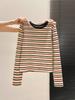 Women's Slim Fit Color Block Stripe Long Sleeve T-shirt - American Design for Spring and Autumn.