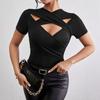 2025 Frühling/Herbst V-Ausschnitt Schlank Sexy Kreuz-Design Ausgeschnitten Kurzarm T-Shirt