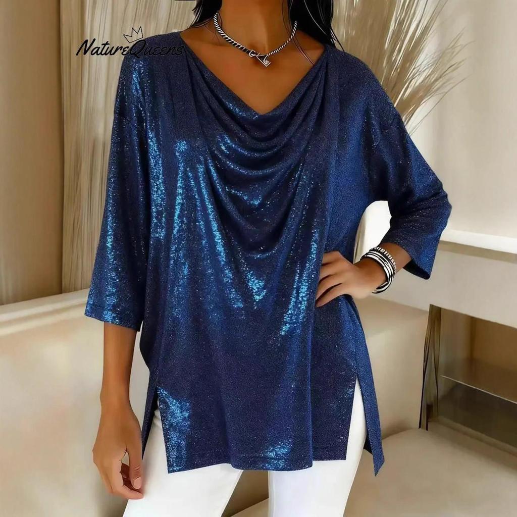 2025 Trendiges europäisch-amerikanisches Damen-Oberteil mit lockerem Stehkragen und Schlitz, Neun-Punkt-Ärmel