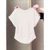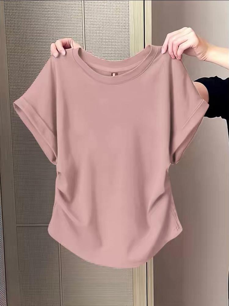 Lotus Root Pink Slimming Cotton T-Shirt for Women, 2026 Style with Cap Sleeves and Cinched Waist.