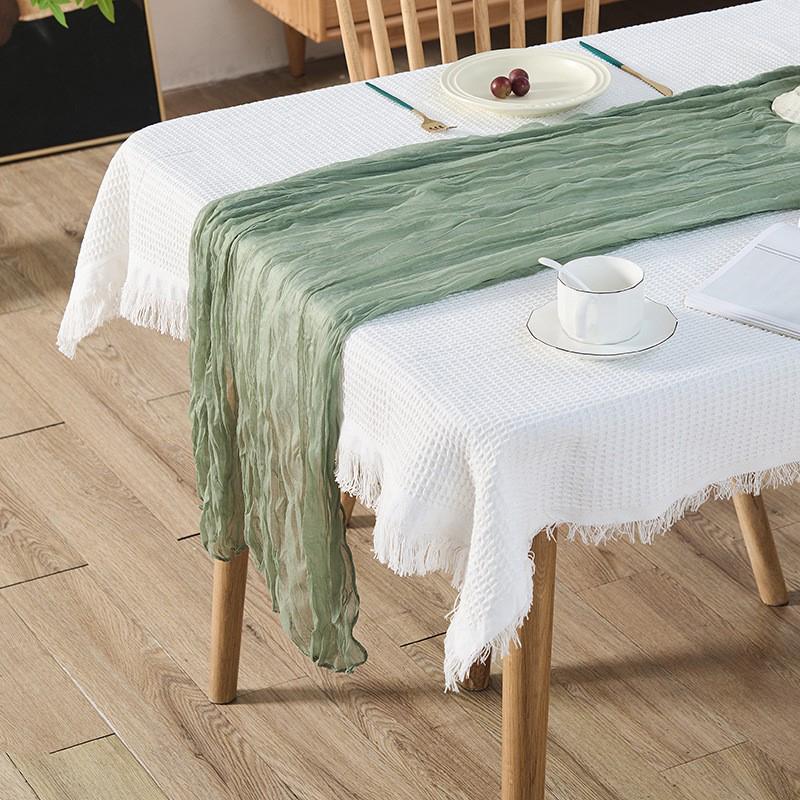 180*90/90*340Cm Cheesecloth Table Runner Gauze Tablecloth Semi-Sheer Crinkle Table Cover Boho Rustic Decorations Bridal Shower