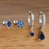 4PCS New Design Stainless Steel Water Drop Cubic Zirconia Dangle Earrings Set Flowers Horse Eyes Stud Piercing Earring Jewelry