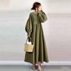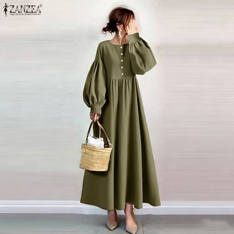 ZANZEA Lässiges Damen-Kleid mit Rundhalsausschnitt, langen Ärmeln und lockerem langem Kleid