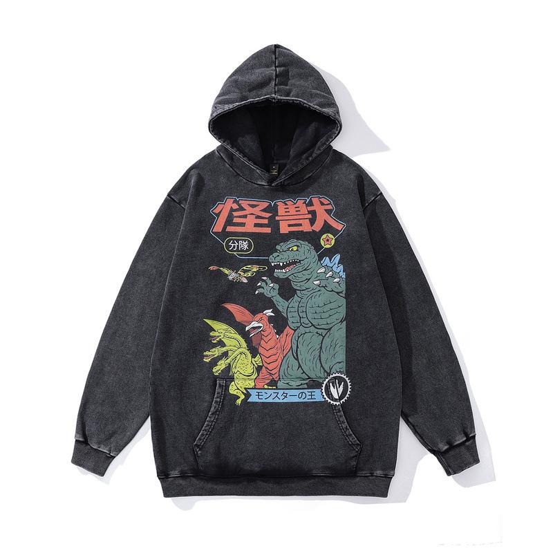 430G Schwere Baumwoll-Kapuzenjacke Retro-Cartoon Direktdruck Gebratene Farbe Pullover Für Männer Und Frauen
