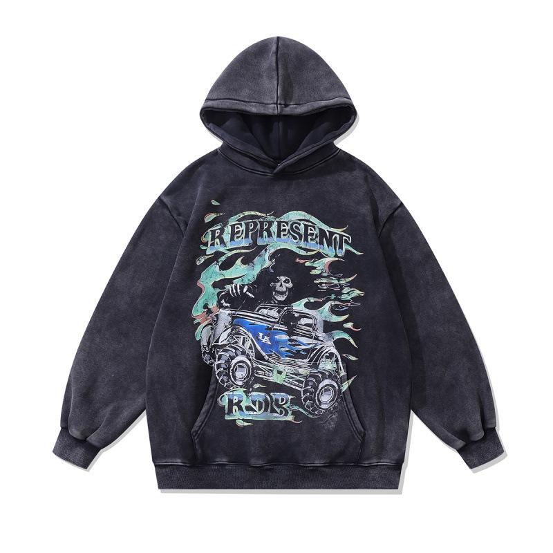 Europäischer und Amerikanischer High Street Totenkopf Digitaler Direktdruck Hoodie Retro 430G Reine Baumwolle Lockerer Pullover Herren