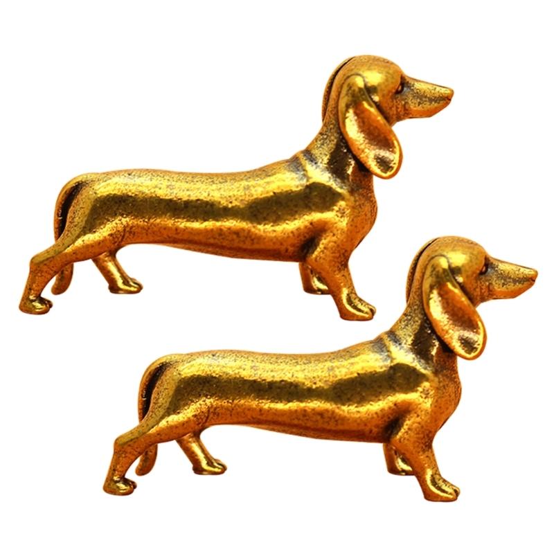 Pack of 2 Solid Brasses Gold Dachshund Miniature Figurine Decoration Animal Sculpture For Home Office Desktop Decors Gift