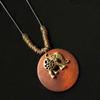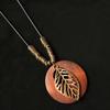 Retro Ethnischer Runder Holzblatt Eule Lange Pullover Kette Halskette Damen Uhr Anhänger Damen Schmuck