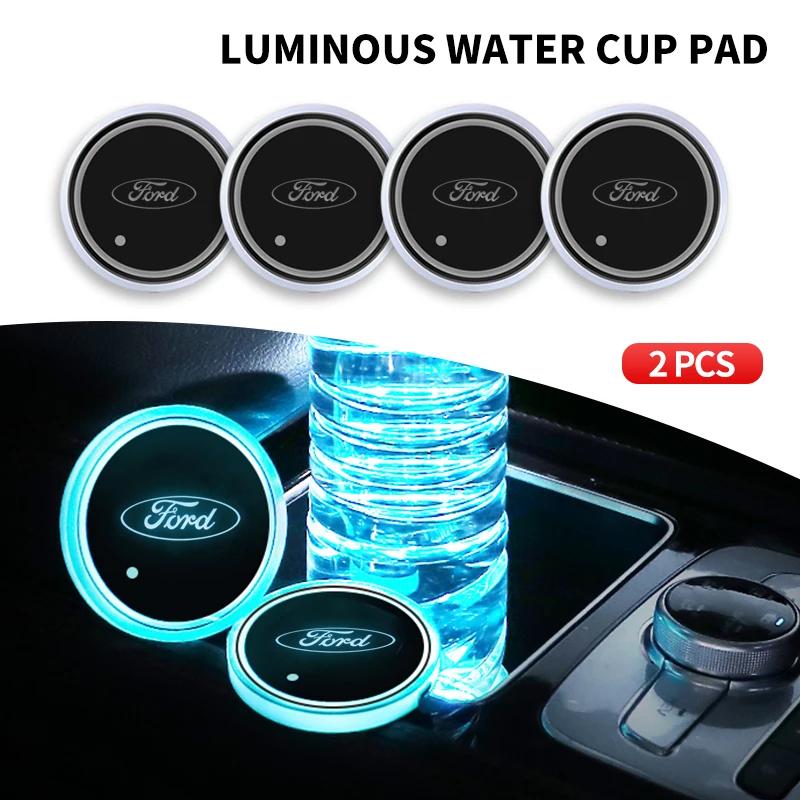 Heißes Buntes LED Auto Becherhalter Licht Auto Untersetzer Flasche Atmosphäre Licht Matten Für Ford Focus 2 3 Mondeo Fiesta Kuga Escort Expl