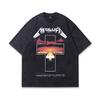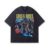 Europäisches Und Amerikanisches High Street Retro Kurzarm-T-Shirt Oversize Gewaschen Rockdruck Vintage Baumwolle Kurzarm-T-Shirt Herren