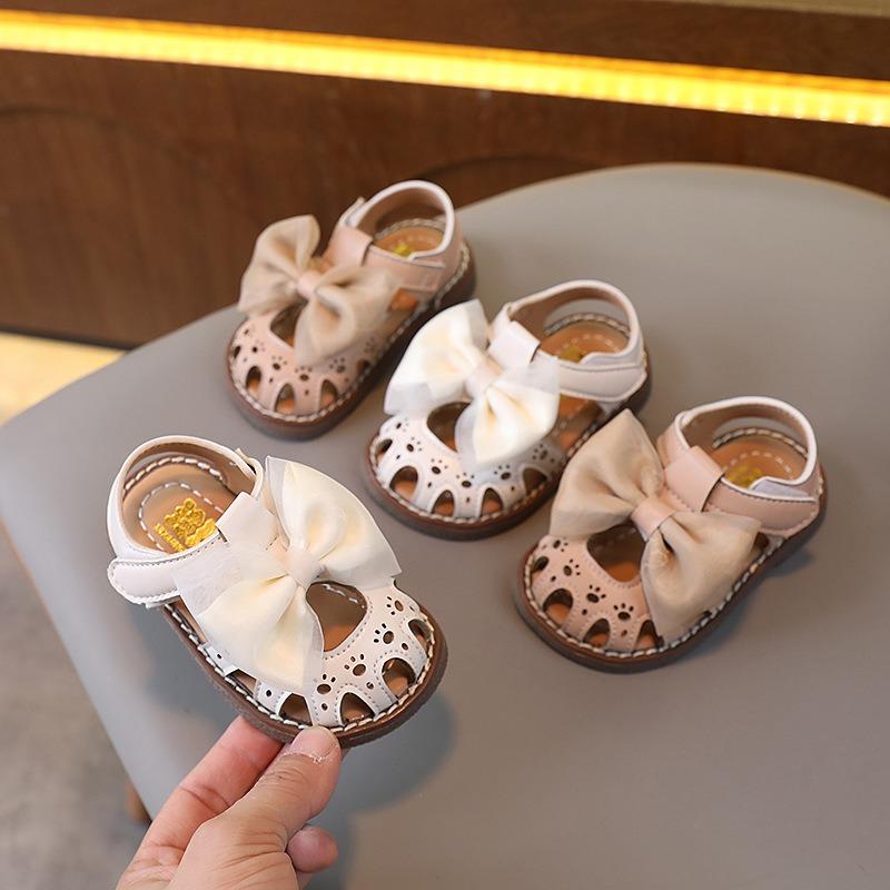 New Summer Style Children's Sandals for Baby Girls 0-1-2 Years Old, Hole Shoes with Closed-Toe and Bowknot, Princess Shoes.