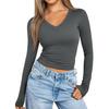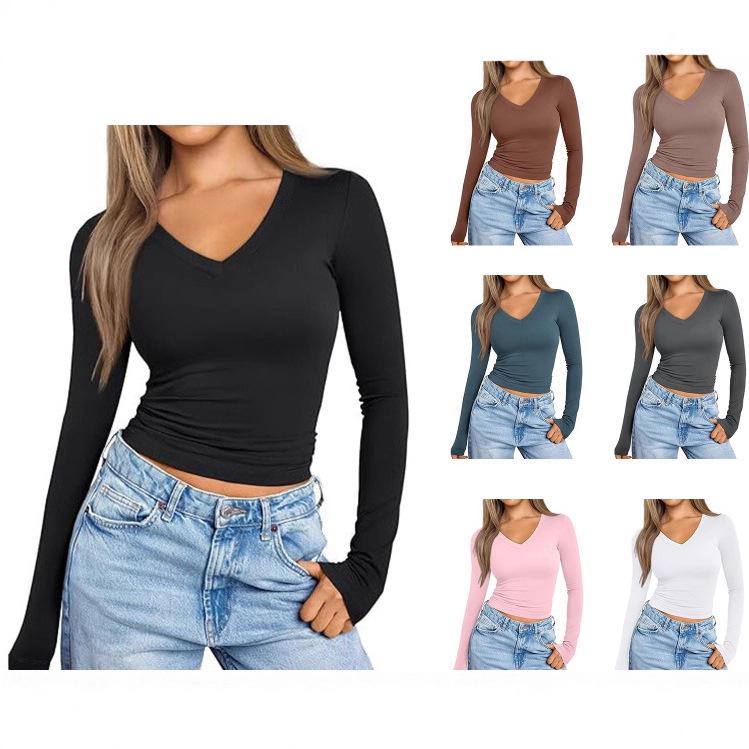 Women's European American V-Neck Slimming Long-Sleeve Bodycon Milk Silk Top