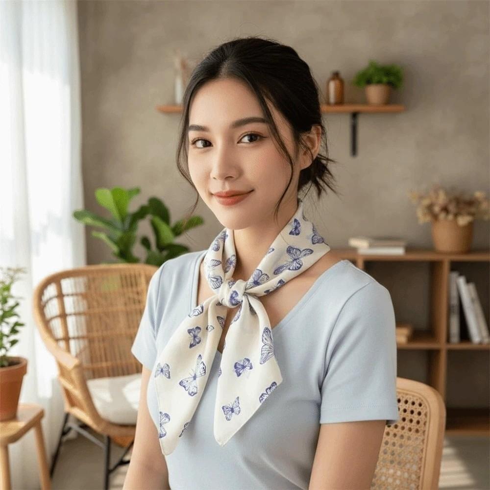Breathable Small Square Scarf Lightweight Square Handkerchief Elegant Printed Silk Scarf Women