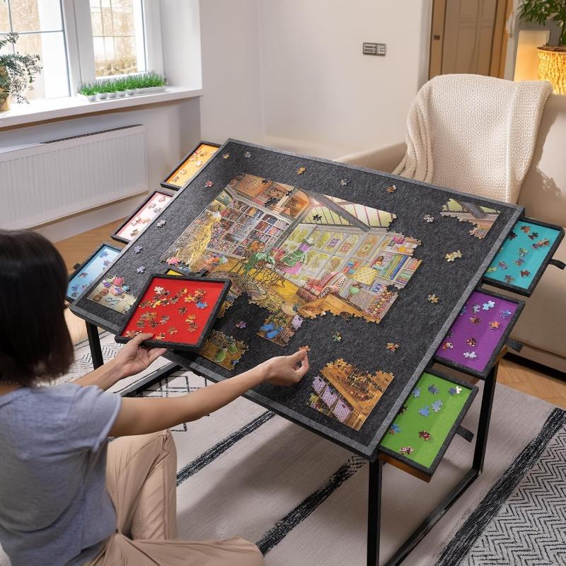 7pcs Set Of 1000 Puzzle Storage Tray -6-in-1 Puzzle Table Board, with 6 Drawers, Portable, Puzzle Table Puzzle Board