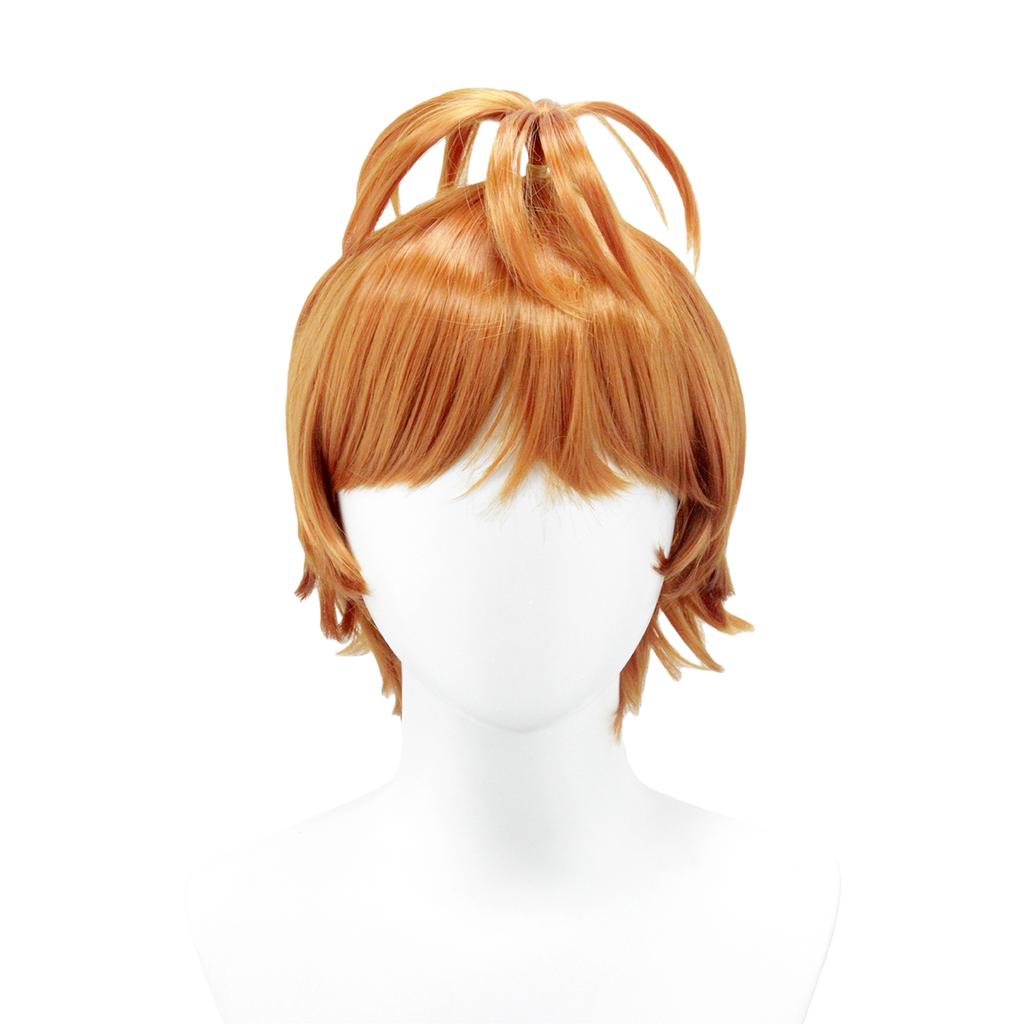 Orange-Brown Top Double Pony Braid Up Wig Bangs Fluffy Layered Glossy Soft Spunky Cosplay Personal Style synthetic wig