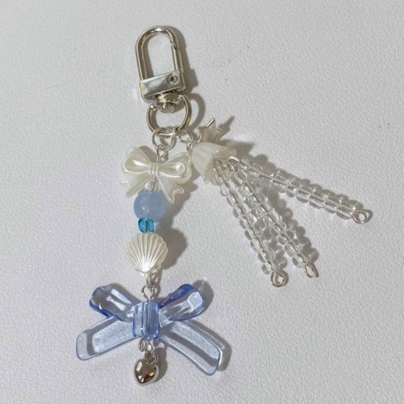Y2K Phone Charm Blue Bow Star Keychain Beaded Pendant Kawaii Keychain Anti-Lost Bag Chain Cute Accessory for Girls Women Jewelry