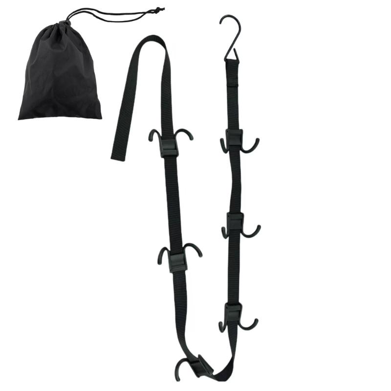 Vertikale Aufhängesysteme für schnelltrocknende Hockeyausrüstung verhindern Feuchtigkeitsansammlungen. Ideal für Garage, Camping und Reisen.