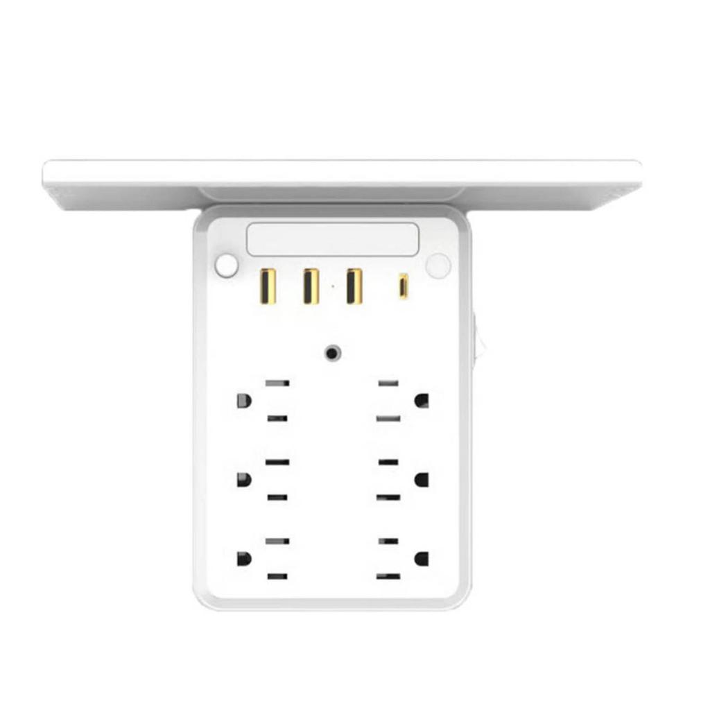 Multi-Plug With Night Light Upgraded Wall Extender With Shelf 8 AC , 4 USB Ports, Dimmable LED, Desk Organizer For Home