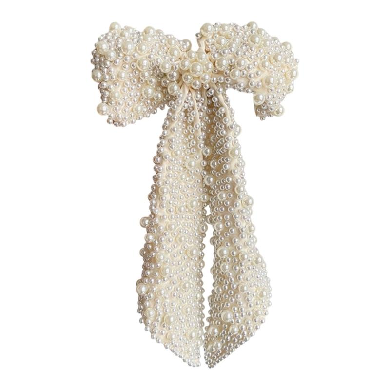 Fashion Artificial Pearls Bowknot Hair Clip For Bridal Shower Formal Event Photoshoots Special Occasion NonSlip Hairpin