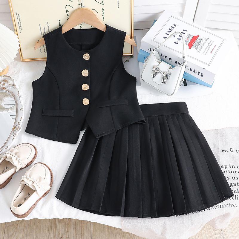 Modisches Outfit für Mädchen - Sommer Kinder Freizeitjacke Oberteil mit Faltenrock, Klassisches Zweiteiliges Set
