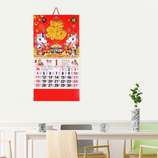 2026 Chinesischer Hängekalender Jahr des Pferdes Wandkalender Chinesischer Mond-Monatskalender für Chinesisches Zuhause Restaurant Büro Schule
