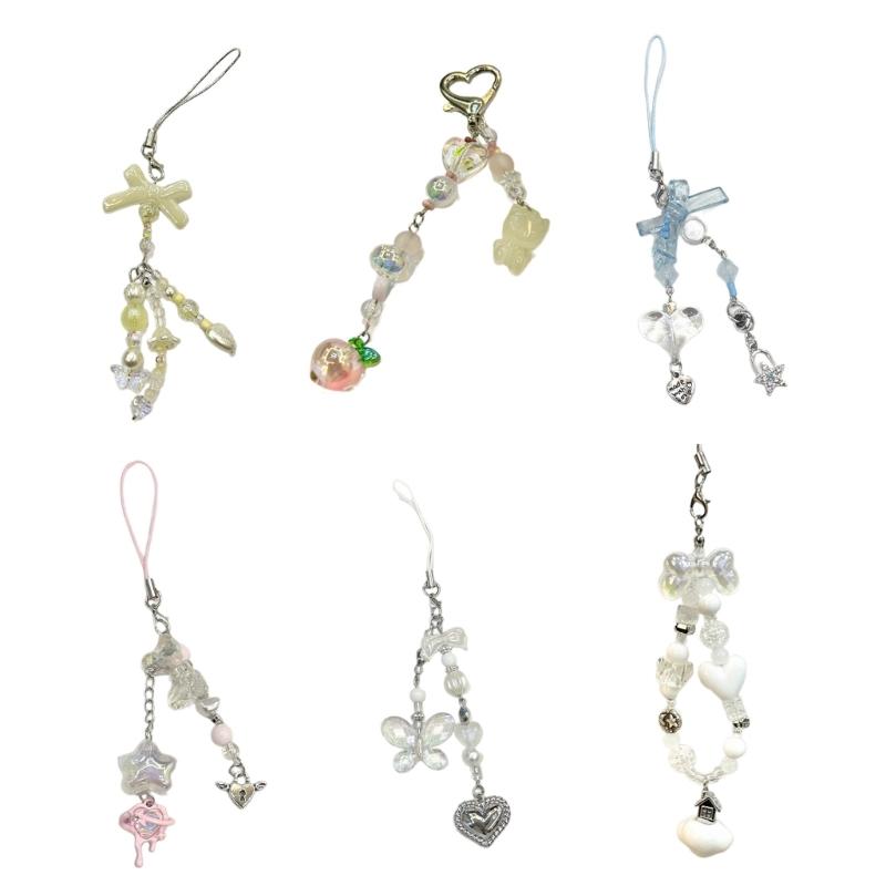 Unique Butterfly Beaded Mobile Phone Pendant Lanyard Embellishment Keychain Keyring Bag Accessory for Fashion Enthusiast