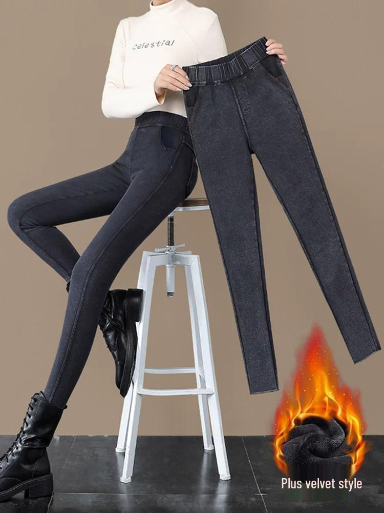 These high-waisted women's leggings are designed with a solid pattern and are fleece-lined for extra warmth, making them ideal as outerwear during the cooler months of spring, autumn, and winter. Crafted from a premium blend of materials, the face fabric consists of 74.3% viscose fiber, 22.6% nylon, and 3.1% spandex, ensuring a comfortable and stretchy fit. The lining incorporates 88.3% polyester fiber and 11.7% spandex, adding to the overall cozy feel. These thickened leggings are fashioned to perfectly complement your wardrobe in a classic 2025 style, offering both functionality and style.