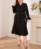 Dieses elegante blumige Patchwork-Kleid in Übergröße aus dem Nahen Osten ist perfekt für die Mode im Frühling und Herbst.. Hergestellt aus hochwertigem Polyestermaterial, verfügt es über eine einzigartige Collagen-Dekoration, die einen Hauch von Raffinesse verleiht.. Das Kleid wurde für Komfort und Stil entworfen und verfügt über einen Rundhalsausschnitt und lange Ärmel, was es zu einer vielseitigen Wahl für verschiedene Anlässe macht.. Mit seinem auffälligen Blumenmuster und seinem raffinierten Temperament vereint dieses Kleid mühelos moderne Mode mit zeitloser Eleganz.
