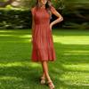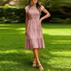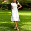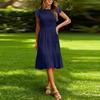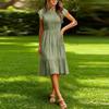 Lässiges und stilvolles farbiges gerafftes kurzärmeliges Kleid für den Weg zur Arbeit