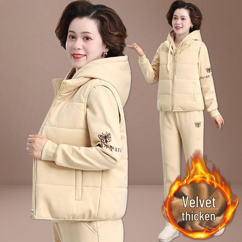 Stay warm and stylish during the colder months with this Winter Sportswear Set, designed specifically for middle-aged and elderly women. This luxurious set includes a velvet thickened vest and coat, both crafted from high-quality silk material for ultimate comfort and elegance. The vest features a fur lining made from silk, ensuring a soft and cozy feel. This combination not only provides excellent insulation but also offers a sophisticated look, perfect for enjoying outdoor activities or casual outings in chilly weather.