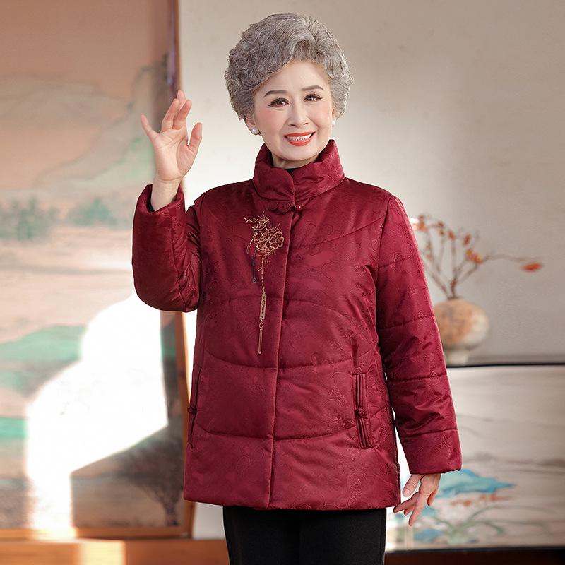 Stylish High-Collar Cotton Jacket for Middle-Aged and Elderly Women - Warm Winter Coat for Moms and Grandmothers, Chinese-Inspired Design