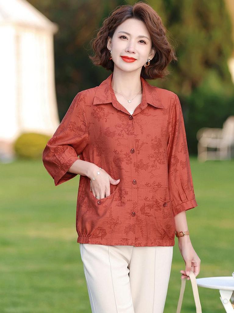 Elderly Women's Summer Solid Color Cardigan with Three-Quarter Sleeves