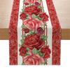 Valentines Day Linen Table Runner Wedding Decoration Heart Gnome Couple Table Runner Tablecloth for Dining Table Decor