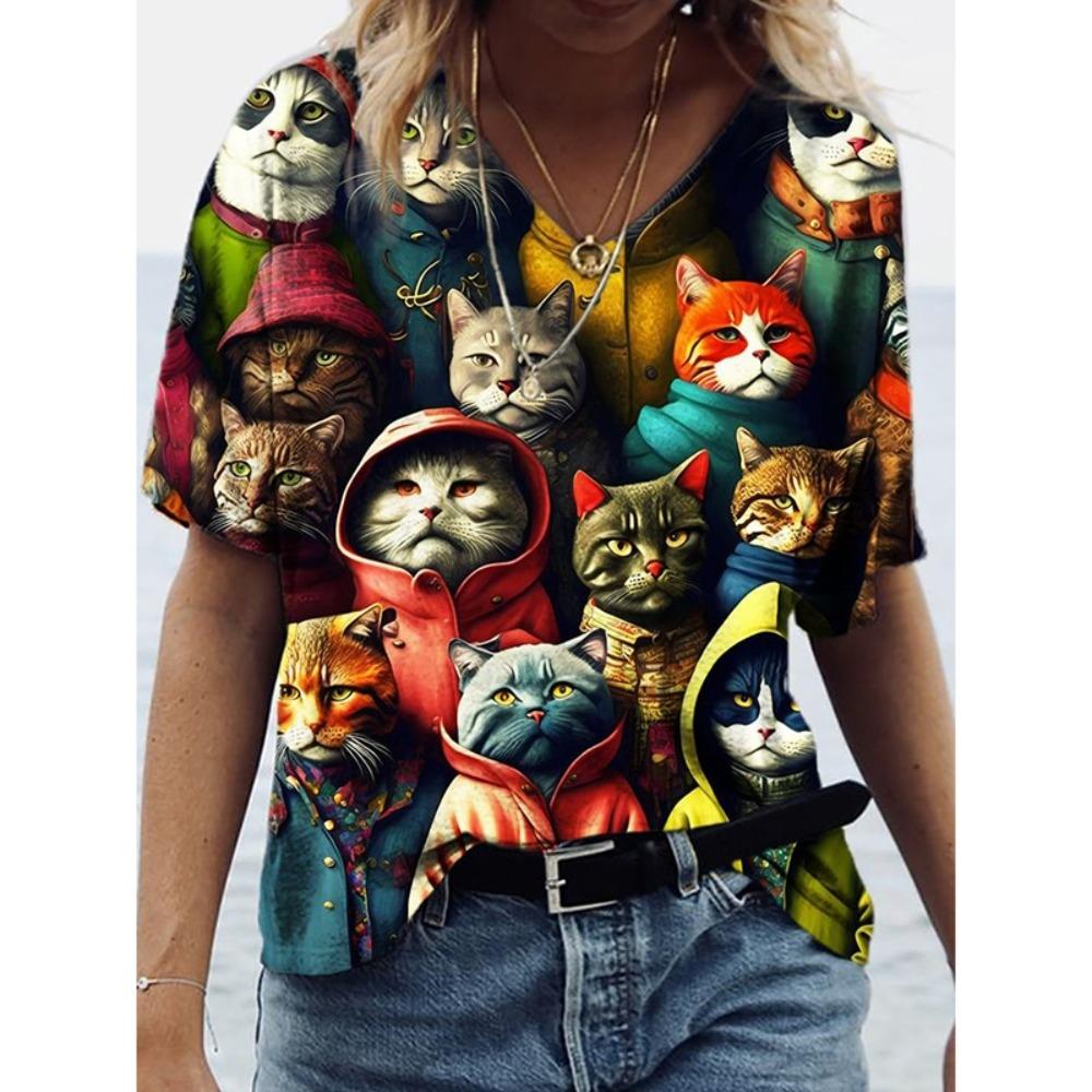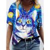 Cooles Mondkatzenmuster T-Shirt für Damen Lustiges Tier 3D-Druck Kurzarm Sommer Locker T-Shirts Rundhals Oberteile Tees Streetwear