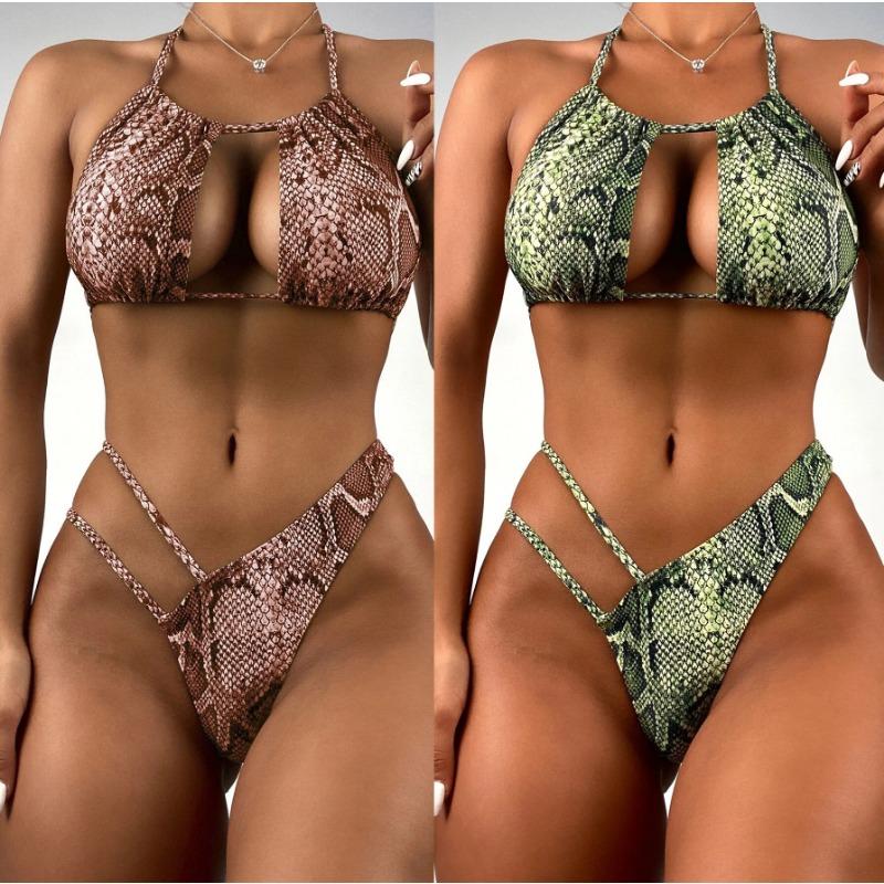 Snake Print Bikini Two-piece Sexy and Fashionable Hollow Split Swimsuit Women's Suit Fashionable Beach Swimwear