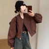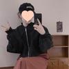 Schwarze Koreanischer Stil Petite Stehkragen Baseballjacke - Herbst/Winter Lässig Vielseitig Mode