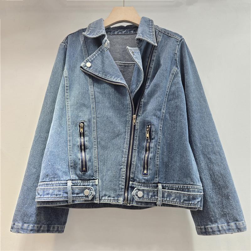 Women's European Retro Short Denim Motorcycle Jacket, Early Spring 2026