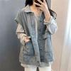 Werten Sie Ihre Garderobe mit dieser stilvollen und lässigen Jeansjacke im lockeren Schnitt auf, die speziell für diejenigen entwickelt wurde, die Retro-Flair schätzen.. Das distressed Patchwork-Design verleiht einen Hauch von Vintage-Charme, perfekt für jeden lässigen Ausflug.. Diese Jacke ist aus Spandex gefertigt und bietet eine bequeme Passform, Flexibilität und Bewegungsfreiheit.. Es verfügt über einen einzigartigen Schneiderausschnitt für einen modernen Touch auf einen klassischen Look. Ideal für zierliche Figuren, ist diese Jacke die perfekte Ergänzung für jeden, der seinem Alltagsstil ein Statement verleihen möchte.