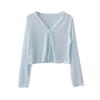 Damen Sommer Klimatisierter Strickcardigan mit Spitzenbesatz - Eis Seide, V-Ausschnitt, Langarm, Sonnenschutz, Leicht & Lockerer Schnitt.