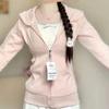 Women's Slim-Fit Pink Hooded Zip-Up Cardigan - Spring/Autumn Yoga Style