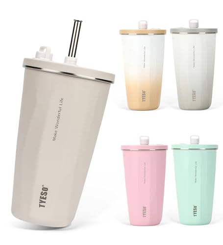 [Trending on Social Media] TYESO Tumbler with Straw, 600ml, Stainless Steel, with Lid, Vacuum Insulated, Keeps Drinks Hot or Cold, Portable, Direct Dr