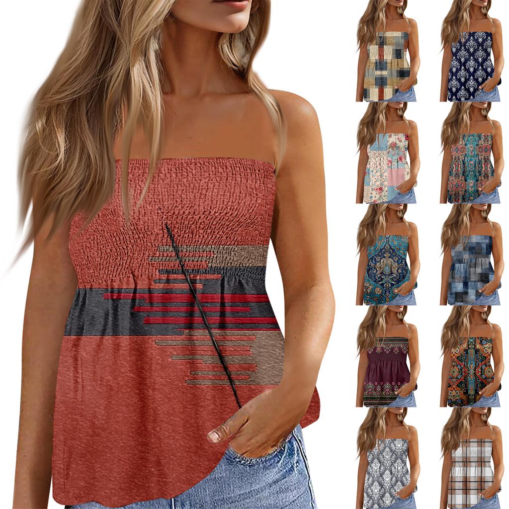 Modisches Sexyness Damen-T-Shirt-Top mit tiefem Rückenausschnitt, elastisch, Retro-Streifenmuster, trägerlos, figurbetont