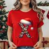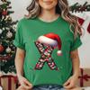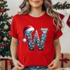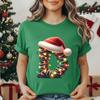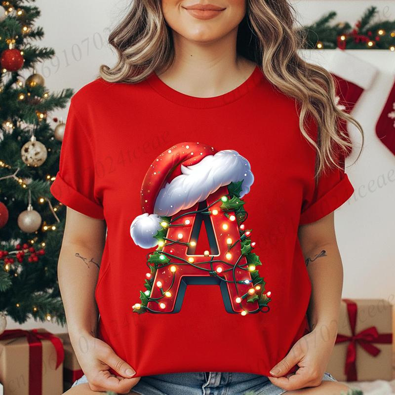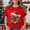 Women's Casual T-Shirt Christmas-lights-wrapped-letter Graphic Tshirt Christmas Design Round Neck Short Sleeve Tee Shirt Clothes