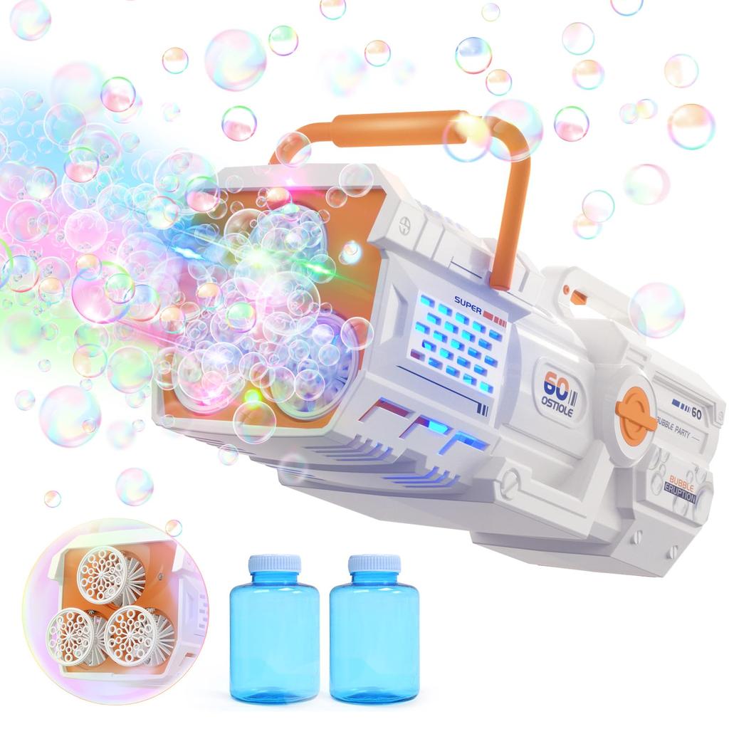 60 Holes for Massive Bubbles: This electric bubble gun features 60 holes, allowing it to produce a massive amount of bubbles, lasting longer than other bubble guns and creating a richer atmosphere. This bubble maker is perfect for large events like weddings and parties. It provides a wonderful experience that can be enjoyed by both children and adults.
