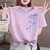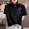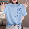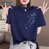 Jeanswest Damen 2026 Sommer Reines Baumwoll-Kurzarm-T-Shirt mit Fliegendem Blumen-Schmetterlings-Aufdruck