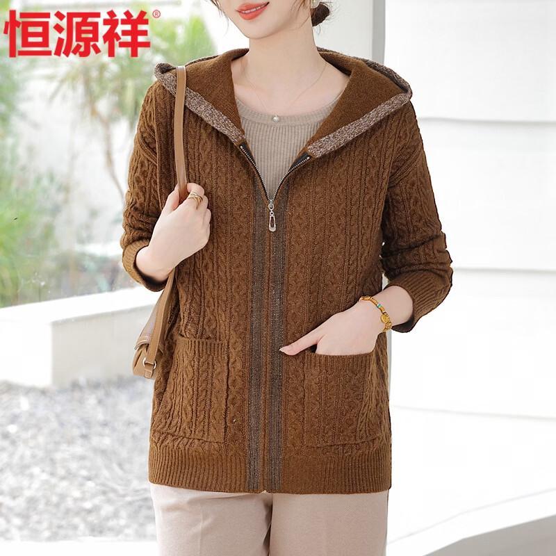 Hengyuanxiang Women's Loose Hooded Knitted Cardigan