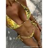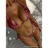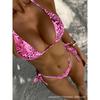 Women's Purple Leopard Print Two-Piece Bikini Set Triangle Top with Side Tie Thong Bottoms
