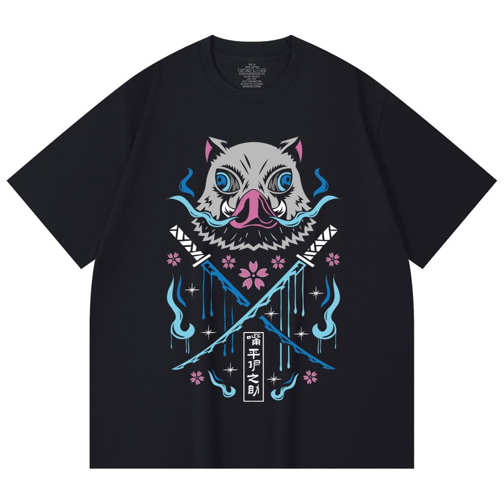 230 g/m² 100% Baumwolle Demon Slayer V97 Inosuke Aufdruck Unisex Schweres Baumwoll-T-Shirt