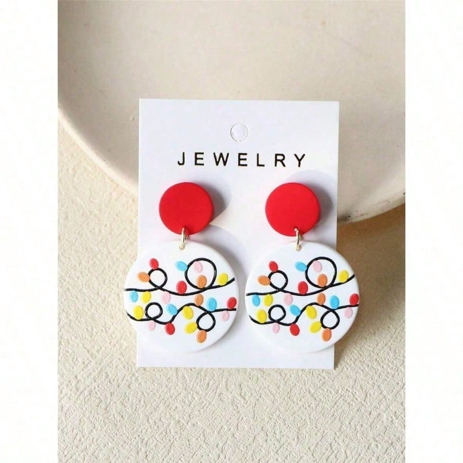 1 Paar Weihnachts-Ohrringe für Damen, rot, farbwechselnder Lichtdruck, erdige Textur, Acryl, rund, für Feiertagspartys