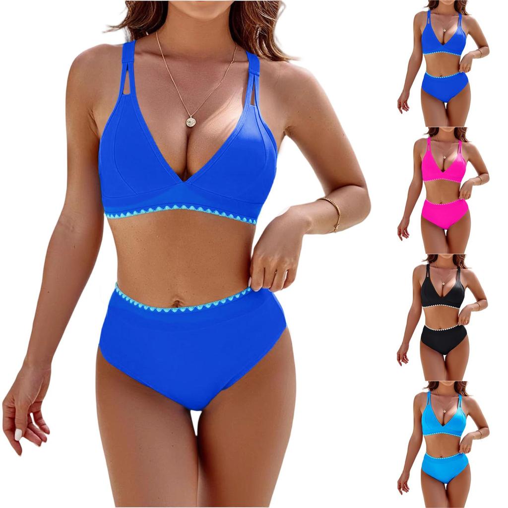 Modischer und sexy V-Ausschnitt Push-up Zweiteiliger Bikini Badeanzug für Damen